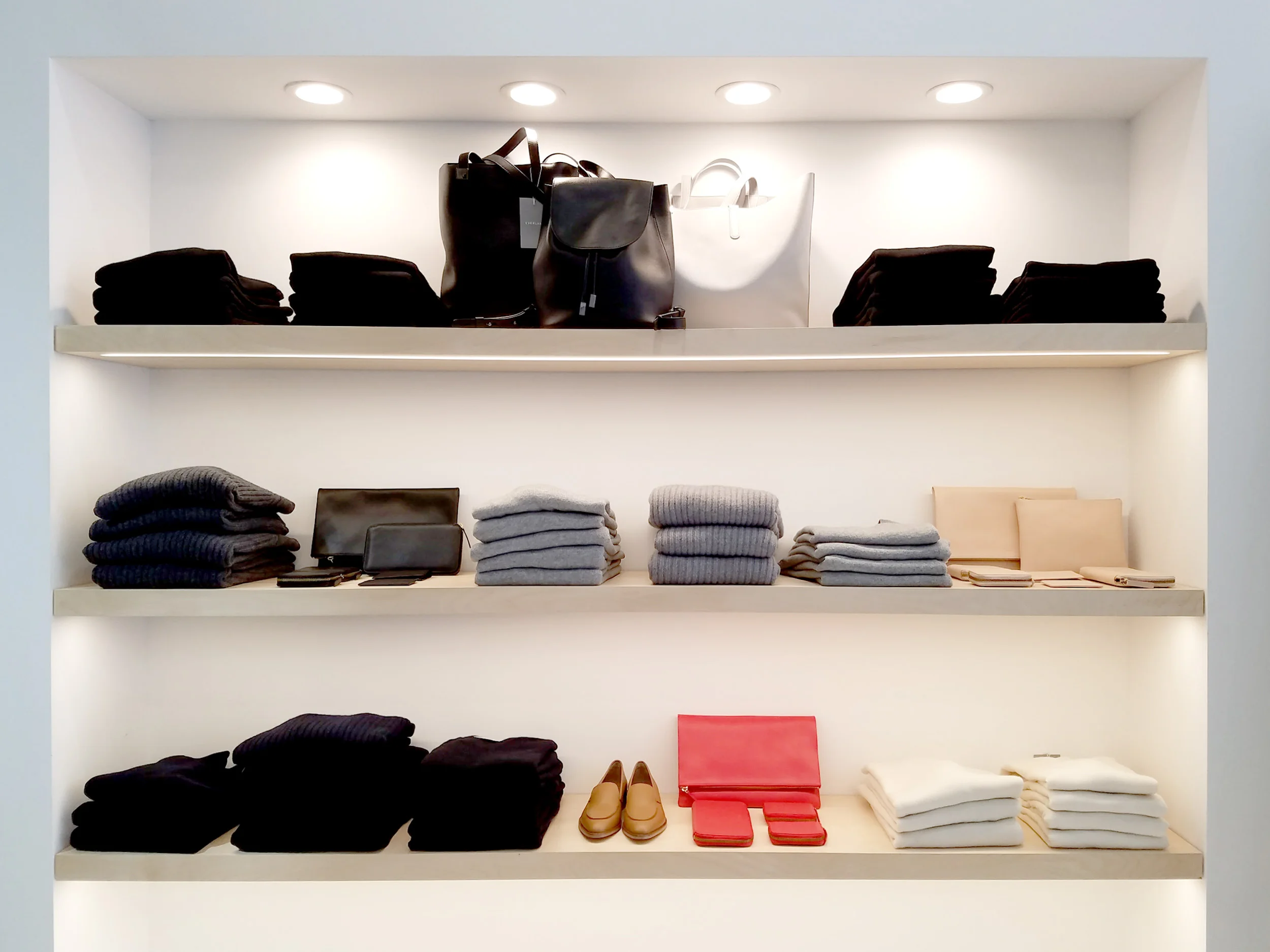 LMNOP worked closely with the Everlane design team and Nicholson Design + Fabrication to fabricate custom display shelving, display tables, and seating. The floating shelves incorporated flush mounted LEDs to best highlight the products; while the powder coated table and seating bases reflected the clean lines that is consistent throughout the space.